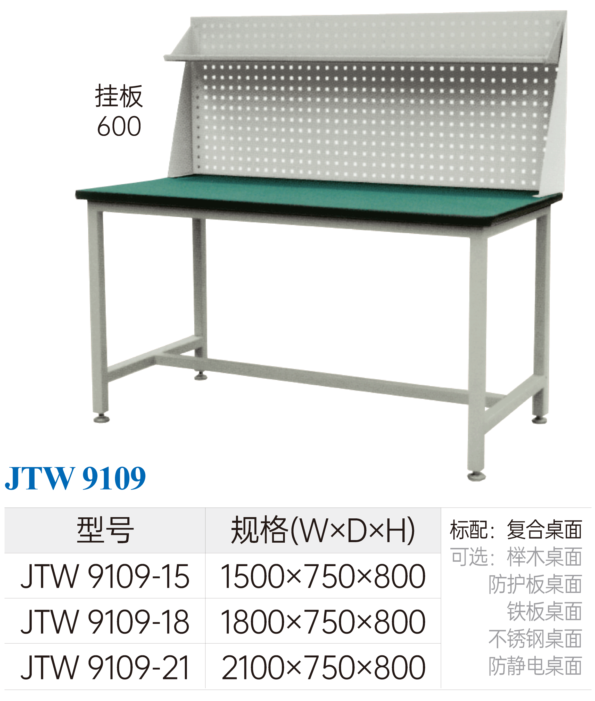 1、工作臺可加裝掛板、電器板、燈架板、棚板等桌上部件。